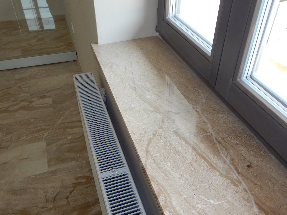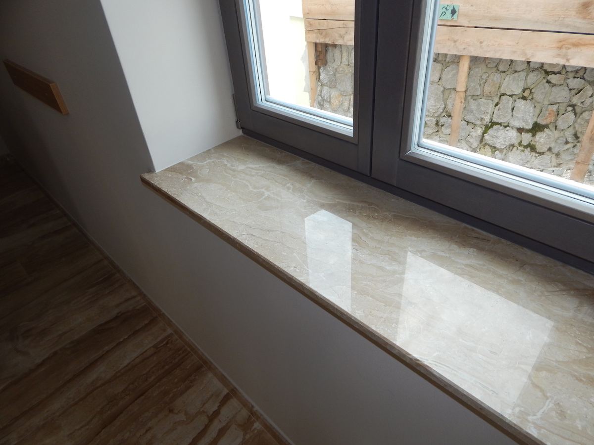 Slike izdelanih okenskih polic iz marmorja in granita, ter slike plošč iz naše zaloge. Vabimo Vas, da si materiale ogledate v živo.